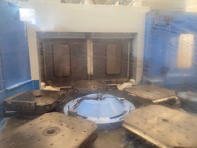 With 6 pallet, High pressure through spindle 50 bars. Loading and unloading station